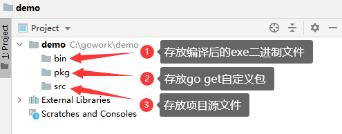 創(chuàng)建完成后,我們還需要在項(xiàng)目根目錄下手動(dòng)創(chuàng)建 bin,pkg和src三個(gè)文件夾。