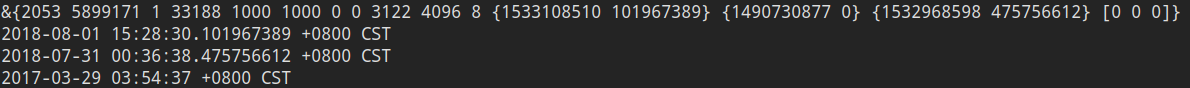 因為Stat_t里的時間都是syscall.Timespec類型,所以我們?yōu)榱溯敵鰞?nèi)容的直觀展示,需要一點helper function: