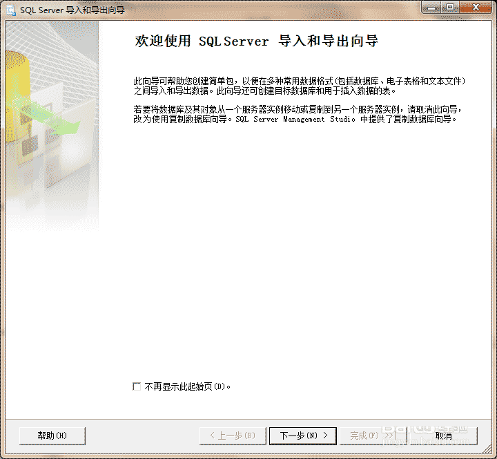 進(jìn)入”SQL Server導(dǎo)入導(dǎo)出向?qū)А?,根?jù)提示步驟操作。