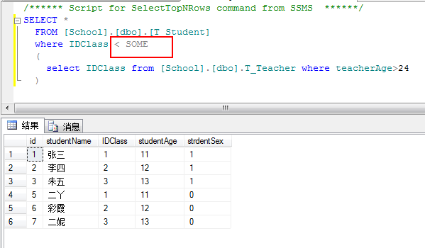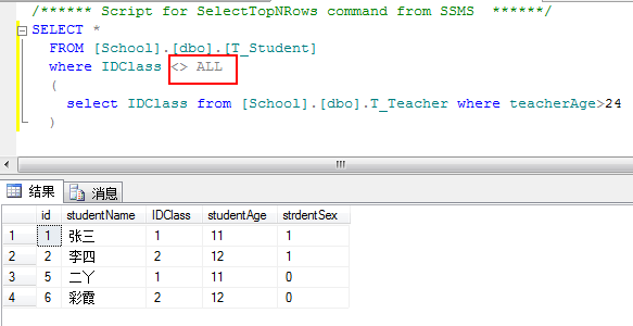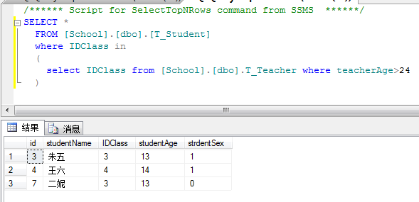 第一個(gè):查詢年紀(jì)>25的老師所教的學(xué)生