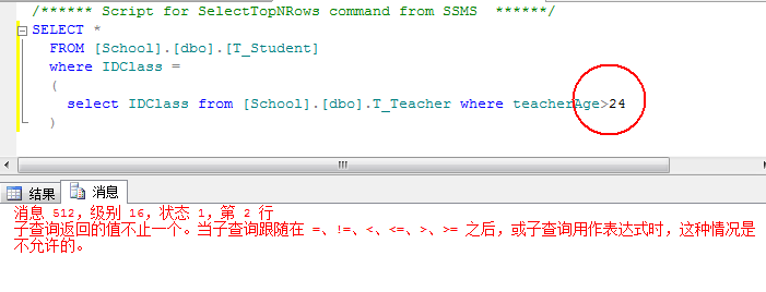 對比:當(dāng)子查詢中的分那會的結(jié)果不是一個(gè)時(shí),父查詢無法正常工作