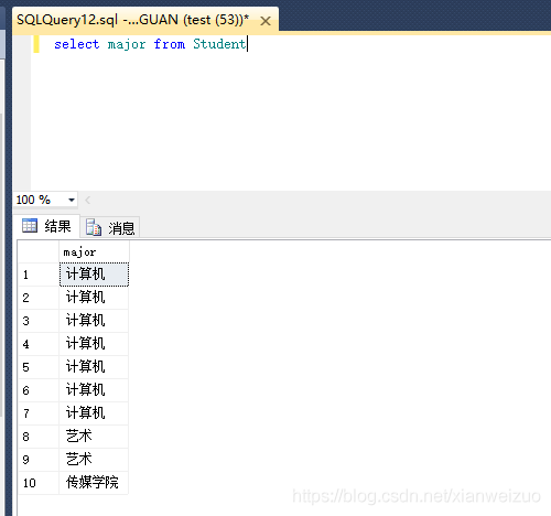 前提,存在一個數(shù)據(jù)庫:JIAOGUAN(教務(wù)管理系統(tǒng)),其中有一個表:Student