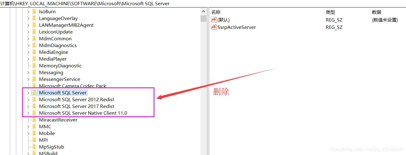 把含有Microsoft SQL Server字樣的都刪除