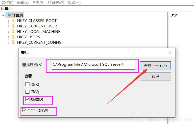 按 win鍵盤+R輸入 regedit 進去注冊表,點擊計算機按“編輯”--》查找下一個