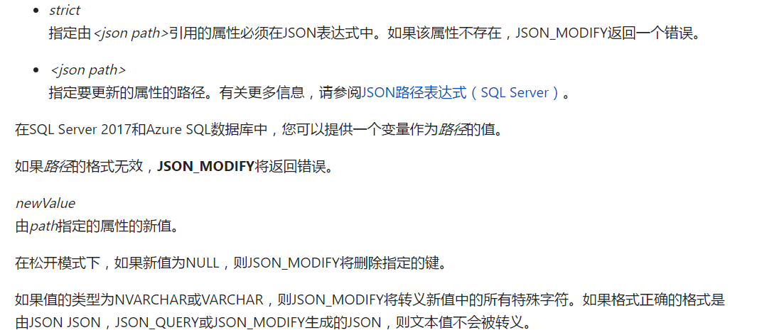 4、JSON_MODIFY :更新 JSON 字符串中屬性的值,并返回已更新的 JSON 字符串。