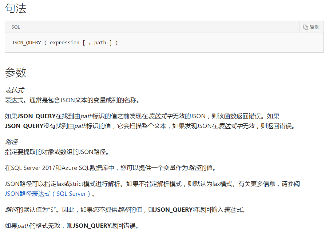有關(guān)在SQL Server中內(nèi)置JSON支持的更多信息,請參閱JSON數(shù)據(jù)(SQL Server)。