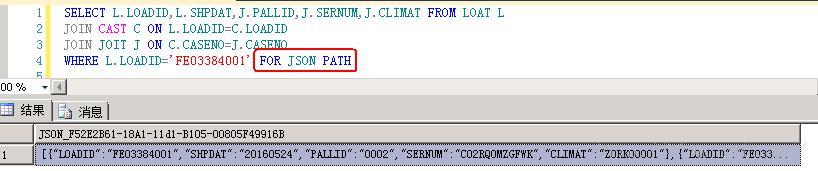 3、FOR JSON PATH輸出:可通過列別名來定義JSON對象的層次結(jié)構(gòu)