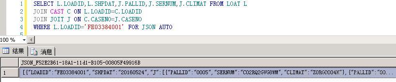 2、FOR JSON AUTO,Root('') :為JOSN加上根節(jié)點