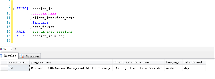 如果你將連接數(shù)據(jù)庫的登錄名的默認(rèn)語言修改為Aribc,然后去執(zhí)行上面SQL語句,就會遇到錯誤,為什么呢?