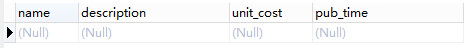 假設當前有一個表:產品表(product),字段為“產品名(name)”、“產品描述(description)”、“單價(unit_cost)”和“生成日期(pub_time)”。