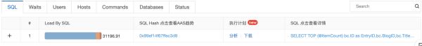 通過(guò)阿里云 RDS 控制臺(tái)的 CloudDBA 可以查看到故障期間獲取首頁(yè)博文的 SQL 語(yǔ)句被執(zhí)行了3萬(wàn)多次,執(zhí)行這么多次是由于查詢超時(shí),無(wú)法建立緩存,每次請(qǐng)求都要訪問數(shù)據(jù)庫(kù)。