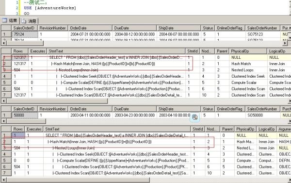 一律給@j一樣的預(yù)測結(jié)果。所以兩個執(zhí)行計劃是完全一樣的(都是Hash Match)。