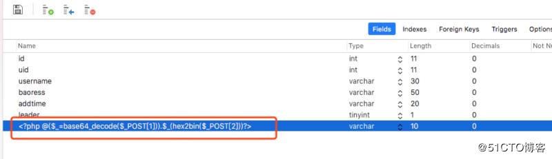 這代碼不就是被注入的表里的字段嗎,上面這段代碼大概意思為:把post請(qǐng)求的兩個(gè)參數(shù),一個(gè)用base64解密,一個(gè)用hex2bin轉(zhuǎn)成16進(jìn)制,然后拼接在一起,應(yīng)該是把操作數(shù)據(jù)庫(kù)的語(yǔ)句加密傳過(guò)來(lái),然后解密,這樣就不會(huì)被攔截掉。如果哪位博友認(rèn)為解釋的有誤,一定要提出來(lái)。