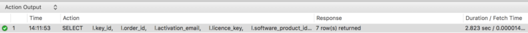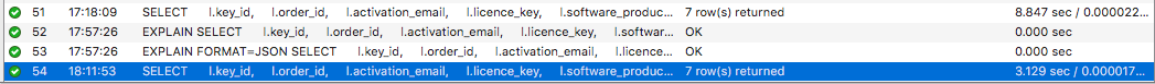 我們知道這是一個(gè)關(guān)于安全的賭注,在posts 表中software license 行是通過(guò)order_id 來(lái)跟 WooCommerce order 相關(guān)聯(lián)的,這在PHP 插件代碼中是強(qiáng)制的。讓我們移除join 來(lái)看看有什么提升沒(méi)有: