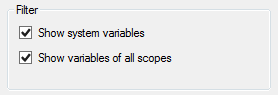 打開Event Handlers Tab,在Variables 窗體中,點(diǎn)擊網(wǎng)格選項(xiàng)(Grid Options)按鈕,打開Variable Grid Options 窗體,在Filter選項(xiàng)中勾選"Show system variables",點(diǎn)擊“OK”,返回到Variables窗體: