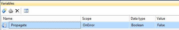 在 Variables 窗體中,找到 Propagate 系統(tǒng)變量(Scope是OnError),把Value設(shè)置為False