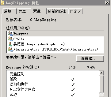 在主服務(wù)器上建立共享目錄C:\LogShipping\primary 具有作業(yè)訪問權(quán)限
