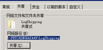 在輔助服務(wù)器上建立共享目錄C:\LogShipping\secondary 具有作業(yè)訪問權(quán)限
