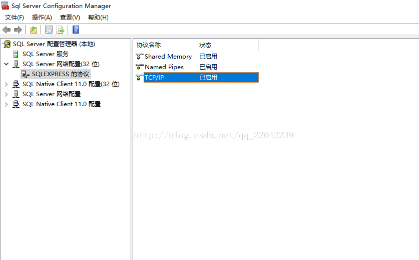 點(diǎn)開(kāi) SQLEXPRESS 的 協(xié)議 下的 TCP/IP,點(diǎn)擊啟用,這里我的已經(jīng)啟用了,如圖下所示: