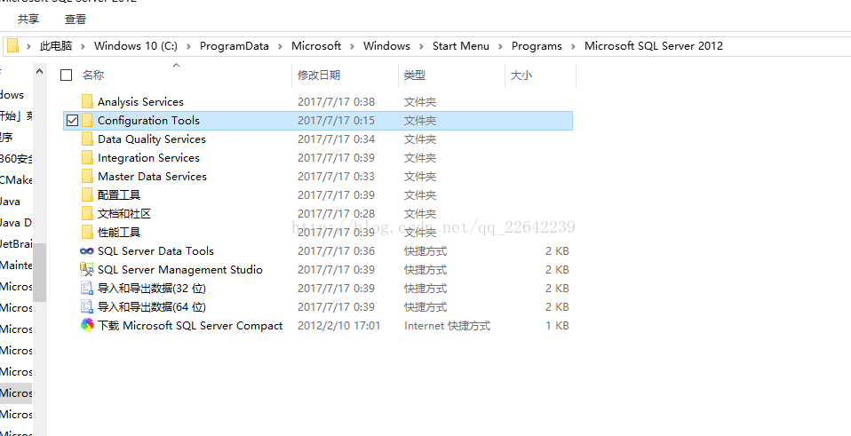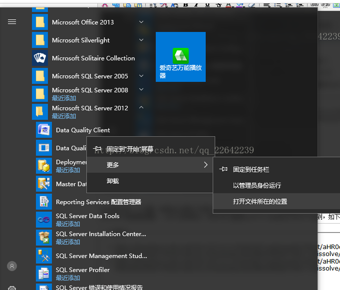 或者 你可以直接打開(kāi) C:\ProgramData\Microsoft\Windows\Start Menu\Programs\Microsoft SQL Server 2012 這個(gè)文件夾,根據(jù)你自己電腦的結(jié)構(gòu)操作。