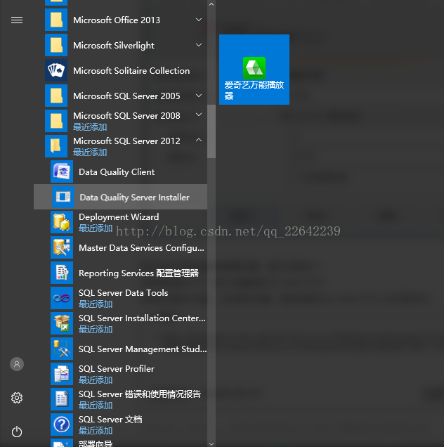 鼠標(biāo)移動(dòng)到win 鍵上 點(diǎn)擊鼠標(biāo)左鍵,找到安裝的sql server 2012 如下圖 所示: