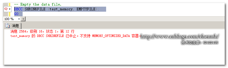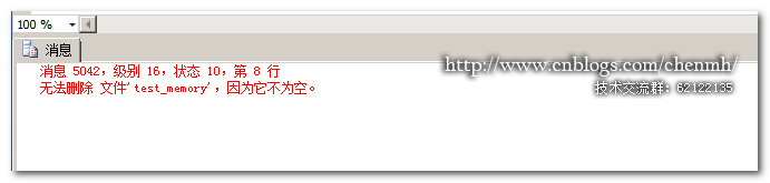 一開始是在alwayson的環(huán)境中刪除,提示由于副本的原因無法刪除。后面單獨(dú)在一個非alwayson的環(huán)境下的數(shù)據(jù)庫測試同樣是無法刪除,起初以為是創(chuàng)建了內(nèi)存表的原因后面測試僅僅創(chuàng)建文件組和文件然后來刪除文件同樣是無法刪除,個人猜測有可能是buffer的緣故;在buffer中一直存在內(nèi)存表相關(guān)的文件存在,通過執(zhí)行DBCC DROPCLEANBUFFERS命令也無法清空buffer中的內(nèi)存表對象。使盡渾身解數(shù)還是無法將它刪除掉,最后只能投降了?。?!線上環(huán)境等不下去;只能使用最不愿使用的生成表結(jié)構(gòu)導(dǎo)出數(shù)據(jù)的辦法來重建新的數(shù)據(jù)庫。