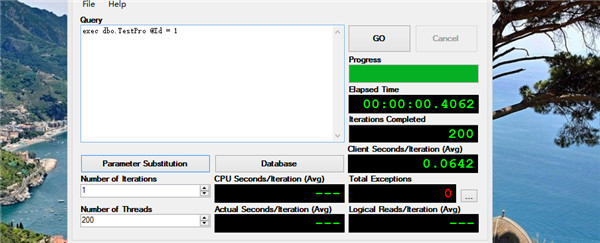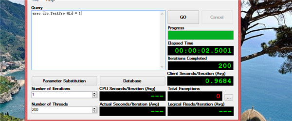 我們統(tǒng)一創(chuàng)建存儲過程通過來SQLQueryStress來測試并發(fā)情況,我們來看第一種情況。