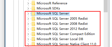 2、將HKEY_LOCAL_mACHINE—SOFTWARE—Microsoft下的Microsoft SQL Native Client ,Microsoft SQL Server, Microsoft SQL Server 2008 Redist全部刪除