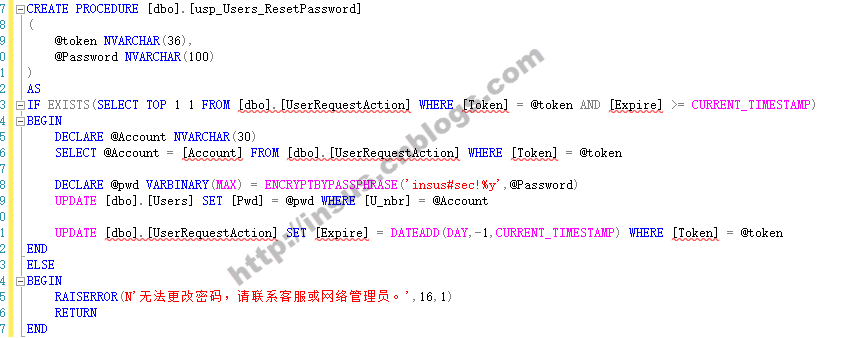 RAISERROR(N'無法更改密碼,請聯(lián)系客服或網(wǎng)絡(luò)管理員。',16,1)