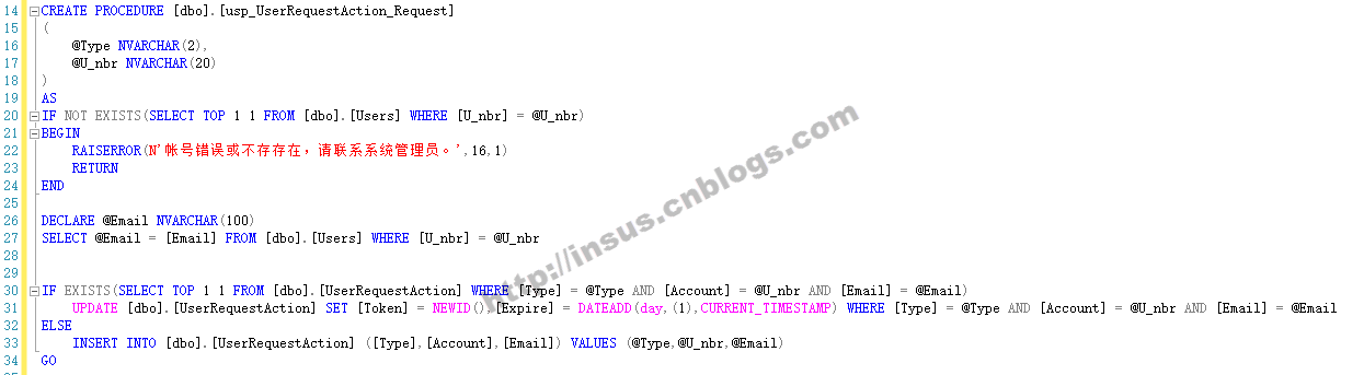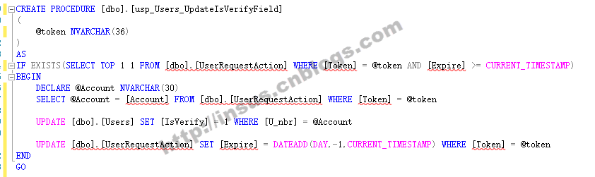 當(dāng)用戶發(fā)出驗(yàn)證郵箱或是更改密碼時,讓程序執(zhí)行下面的存儲過程: