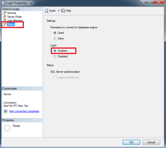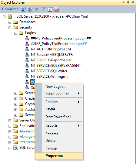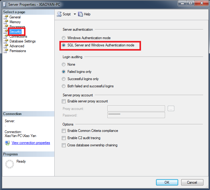 如果安裝的時(shí)候沒有選擇“混合登錄”,那么可以先WindowsAuthertication登錄進(jìn)去后修改配置: