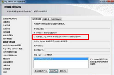 2. 數(shù)據(jù)庫引擎設(shè)置,選擇“混合模式”,給系統(tǒng)管理員sa設(shè)定登錄密碼。