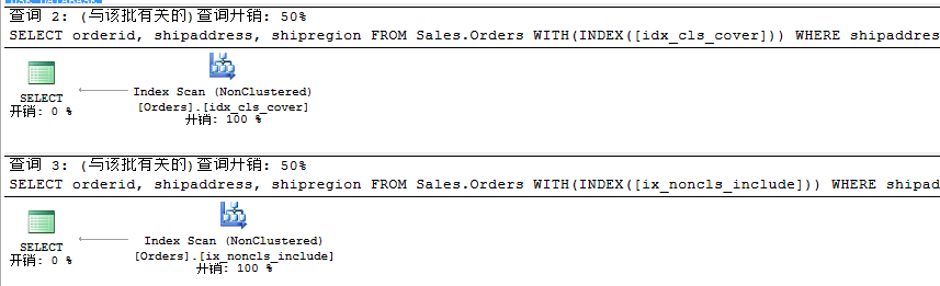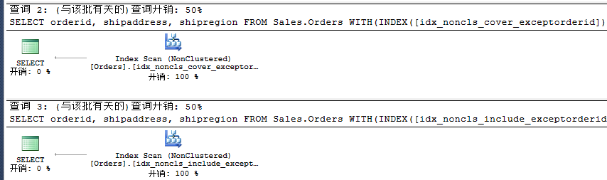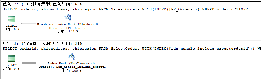 我們從上所知,二者開銷一樣,并未有什么區(qū)別,當然相信我們更傾向于的是將第二種方式作為解決方案。到這里算是基本結束了,但是還有一個小問題,我們在之前已經(jīng)創(chuàng)建了orderid的聚集索引,后面在解決方案中我們也添加了orderid的非聚集索引,難道非得添加嗎,我們?nèi)サ粼囋嚳础?/p>