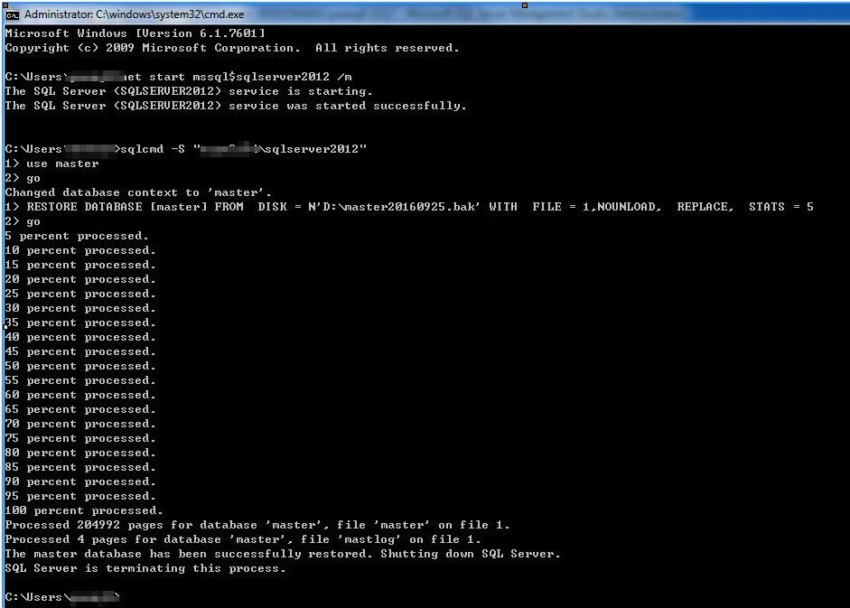 D:\SetUp\sqlserver2012>Setup /QUIET /ACTION=REBUILDDATABASE /INSTANCENAME=sqlserver2012 /SQLSYSADMINACCOUNTS=UserName /SAPWD= ***