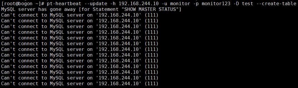 剛才執(zhí)行的pt-heartbeat命令異常退出