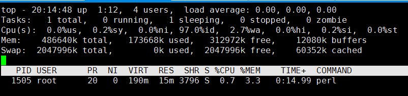 運行了0:15.00(TIME+列),MEM一直穩(wěn)定在3.3%