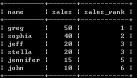 現(xiàn)在又如此要求:按sales的逆序排序,要求添加一個sales_rank字段,顯示排名順序