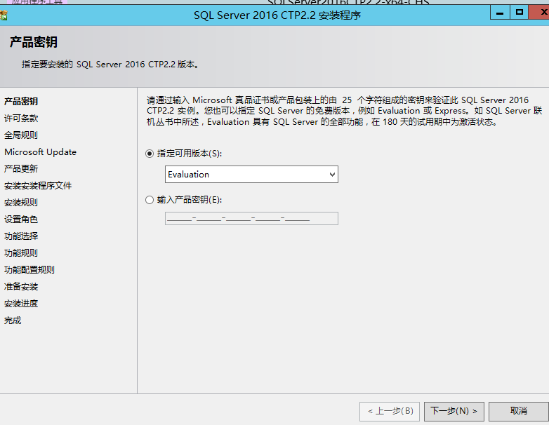 因為是評估版,那么就不需要產(chǎn)品密鑰,直接安裝
