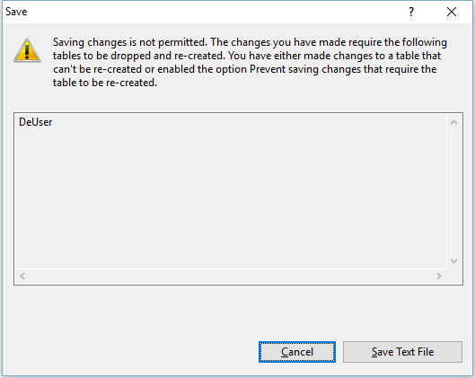 - sqlserver 2008手工修改表結(jié)構(gòu),表不能保存的問題與解決方法