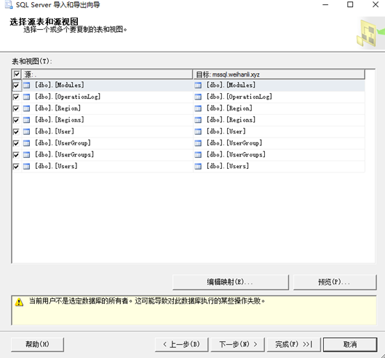 復制某些表的話選擇第一項,之后選擇要復制的表,選擇之后點擊"完成"按鈕即可開始復制數(shù)據(jù)從源數(shù)據(jù)庫到目標數(shù)據(jù)庫