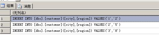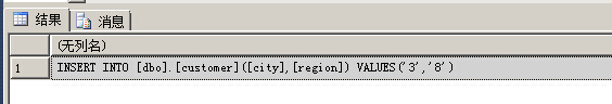 INSERT INTO [dbo].[customer]([city],[region]) VALUES('1','2')