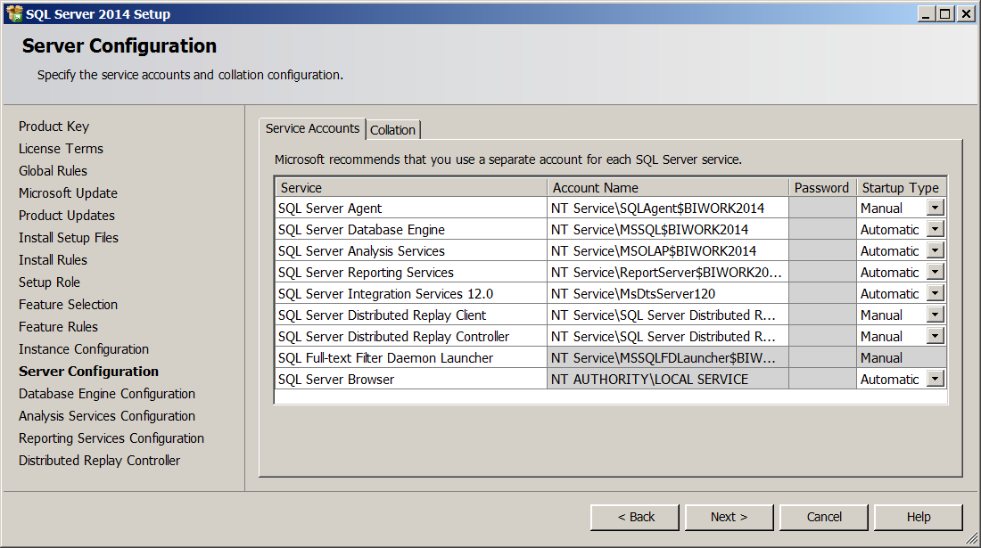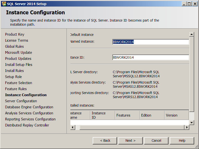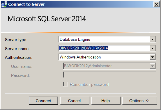 我的習(xí)慣就是喜歡給默認(rèn)實(shí)例改名字 - 這里是 BIWORK2014。