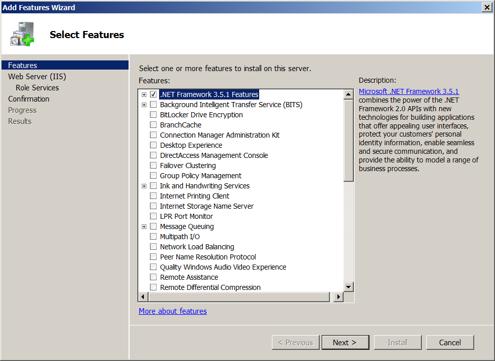 回到 WINDOWS SERVER 2008 R2 管理界面,第3項(xiàng)中的 Add Features 來(lái)添加 3.5 SP1 的支持。