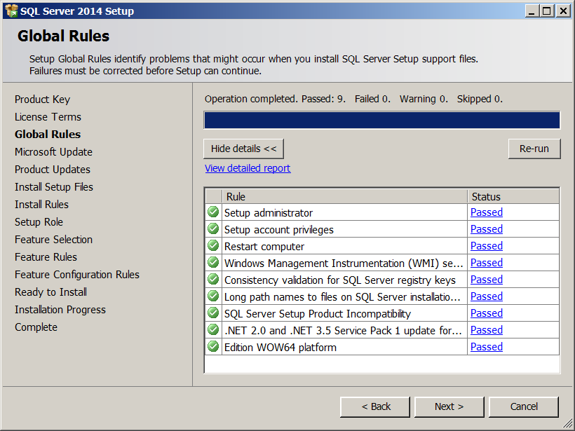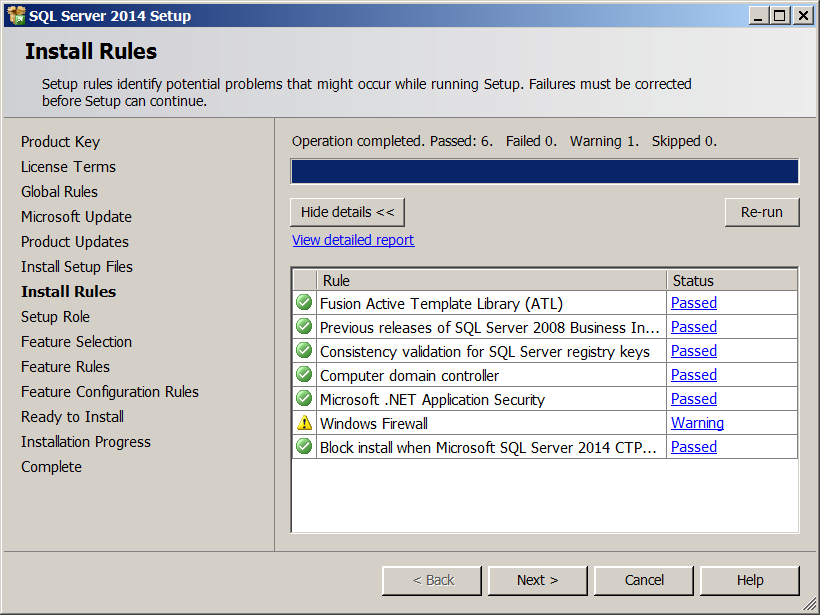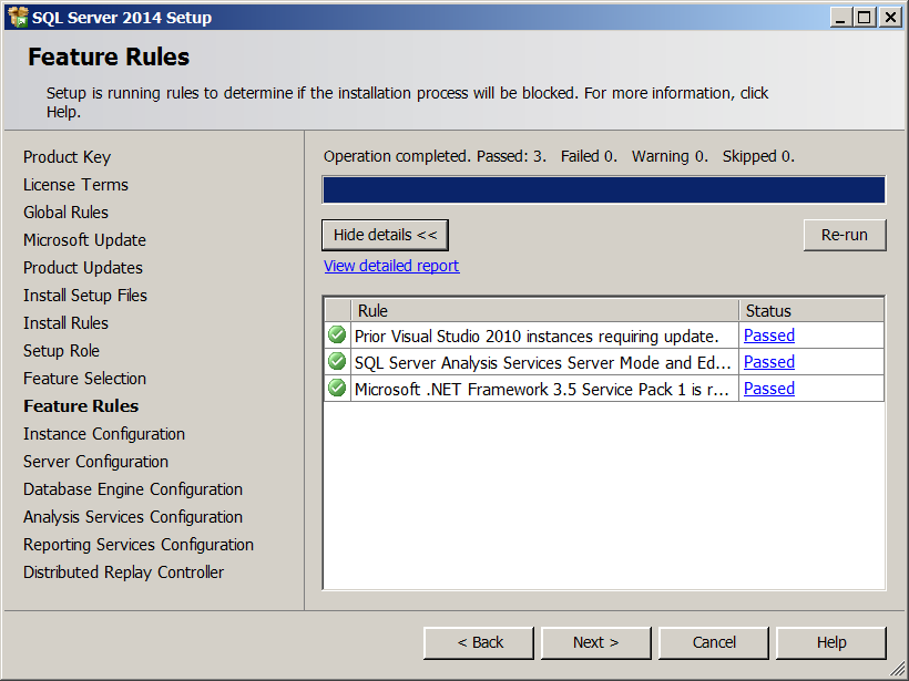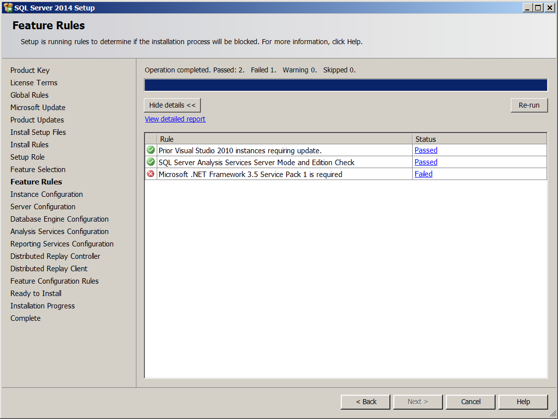 安裝前檢查,雖然在這一步成功了,但是后面卻失敗了,害的重新裝了一遍 .NET FRAMEWORK 3.5 SP1。