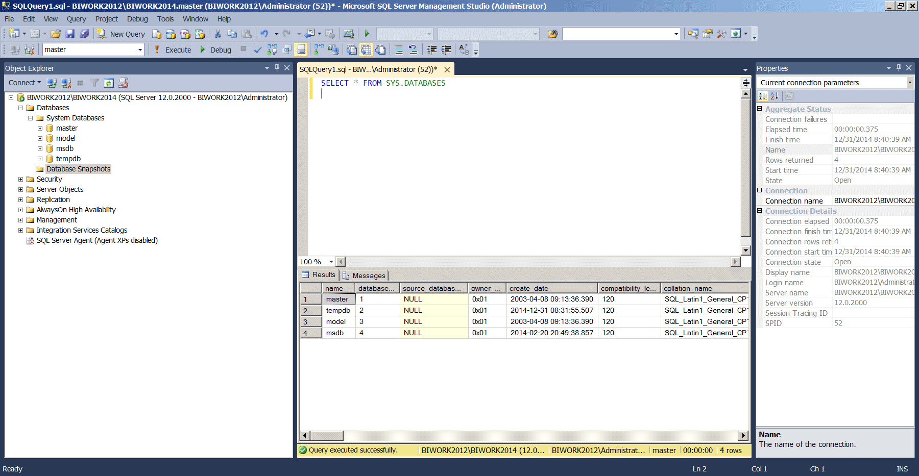 SQL SERVER 2014 安裝完成以后,不像 SQL SERVER 2008 R2 會(huì)提供一個(gè) BIDS 開(kāi)發(fā)工具,也不像 SQL SERVER 2012 會(huì)提供一個(gè) SSDT 開(kāi)發(fā)工具,也就是說(shuō) BI 的開(kāi)發(fā)工具(SSIS, SSRS, SSAS)在安裝完 SQL SERVER 2014 之后是沒(méi)有的。需要單獨(dú)的安裝,這個(gè)內(nèi)容會(huì)再另外一篇文章提到的。
