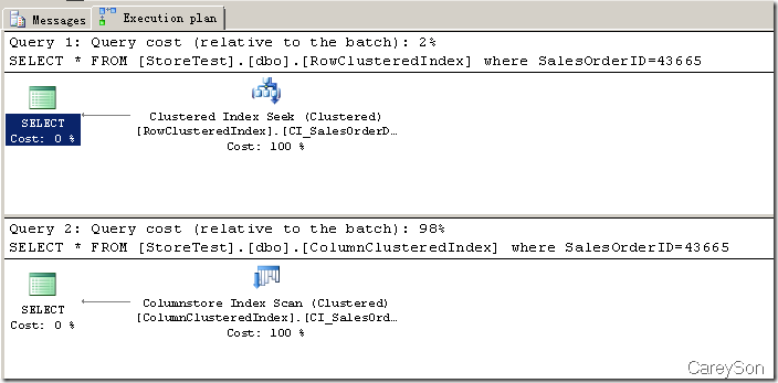 行存儲對于OLTP操作十分適合,因?yàn)槊總€(gè)聚集索引鍵可以標(biāo)識某一行,該行存儲在物理磁盤上也連續(xù),因此可以利用Seek操作完成大量選擇性非常高的查詢,而列存儲索引同一行的每一列并不在物理上聯(lián)系,并且列存儲聚集索引中并沒有“主鍵”的概念,因此并不存在SEEK操作,如果大量OLTP類的查詢,性能將會出現(xiàn)問題。