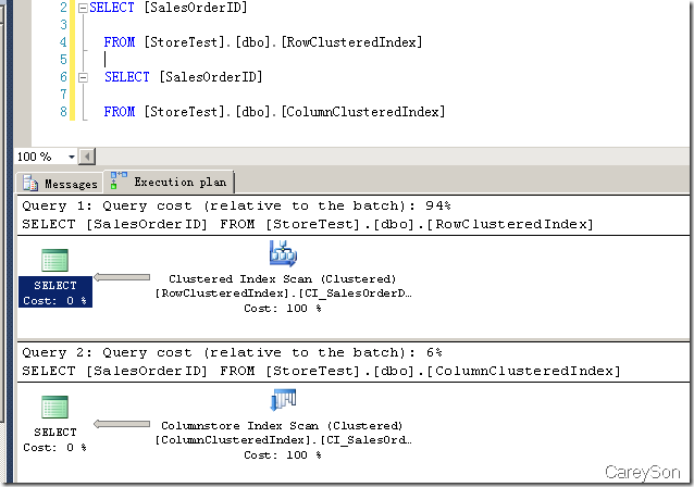 圖7的示例數(shù)據(jù)很少,但依然可以看到,列存儲比即使沒有非聚集索引的行存儲,占用空間也幾乎少了2/3,提升不可謂不巨大。