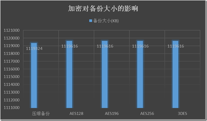 圖4看到,使用備份加密對數(shù)據(jù)庫備份大小幾乎毫無影響。