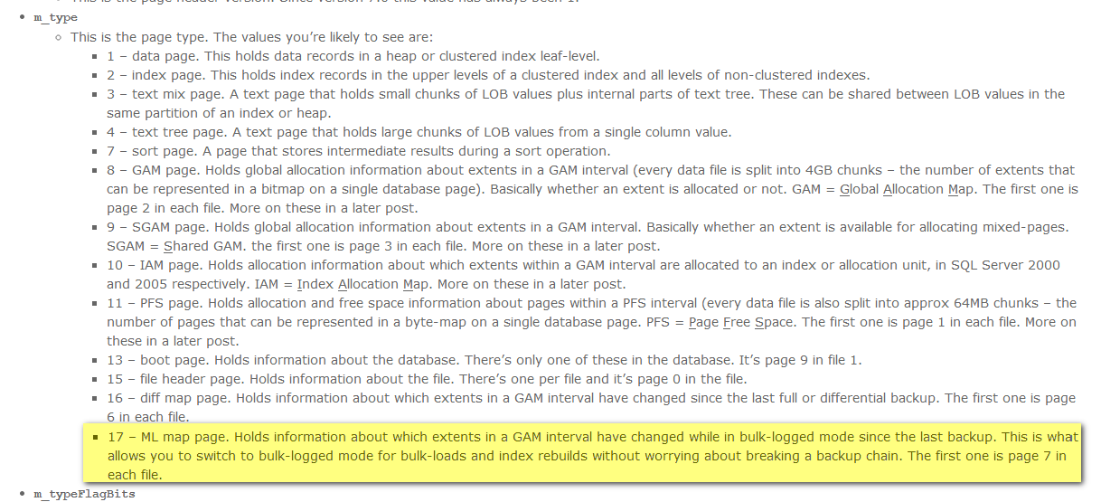 BCM ,大容量更改映射(Bulk Change Map),在數(shù)據(jù)庫(kù)緩存中對(duì)應(yīng)的PageType竟然是ML_MAP_PAGE!Minimally-Logged Page!