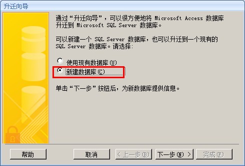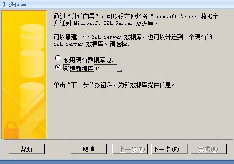 2、點(diǎn)擊SQLSERVER按鈕,彈出升遷向?qū)?duì)話框